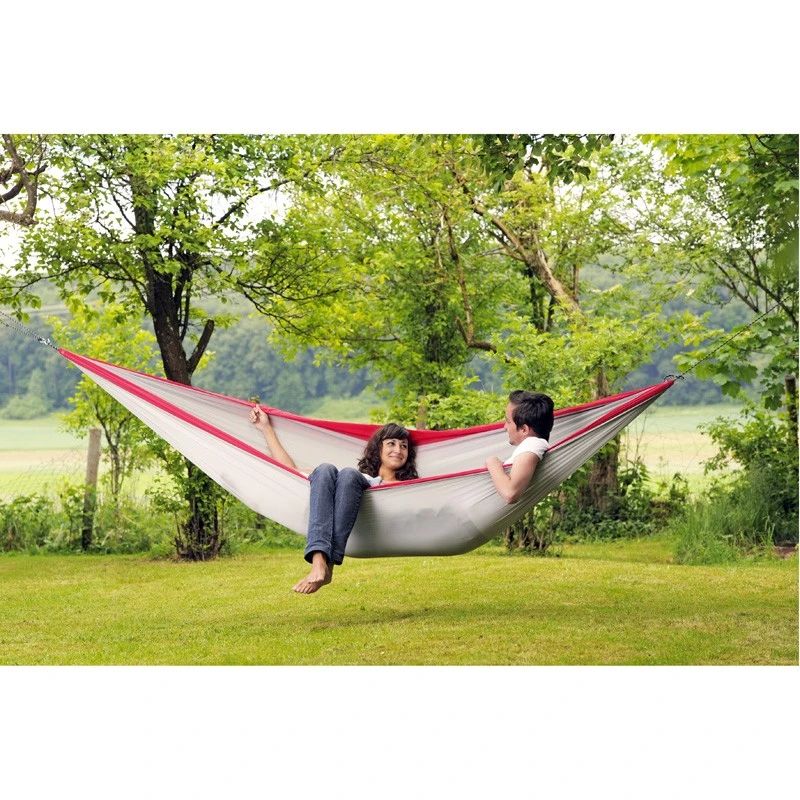 Hängematte besteht aus Fallschirmseide. Dieses Hochleistungsmaterial