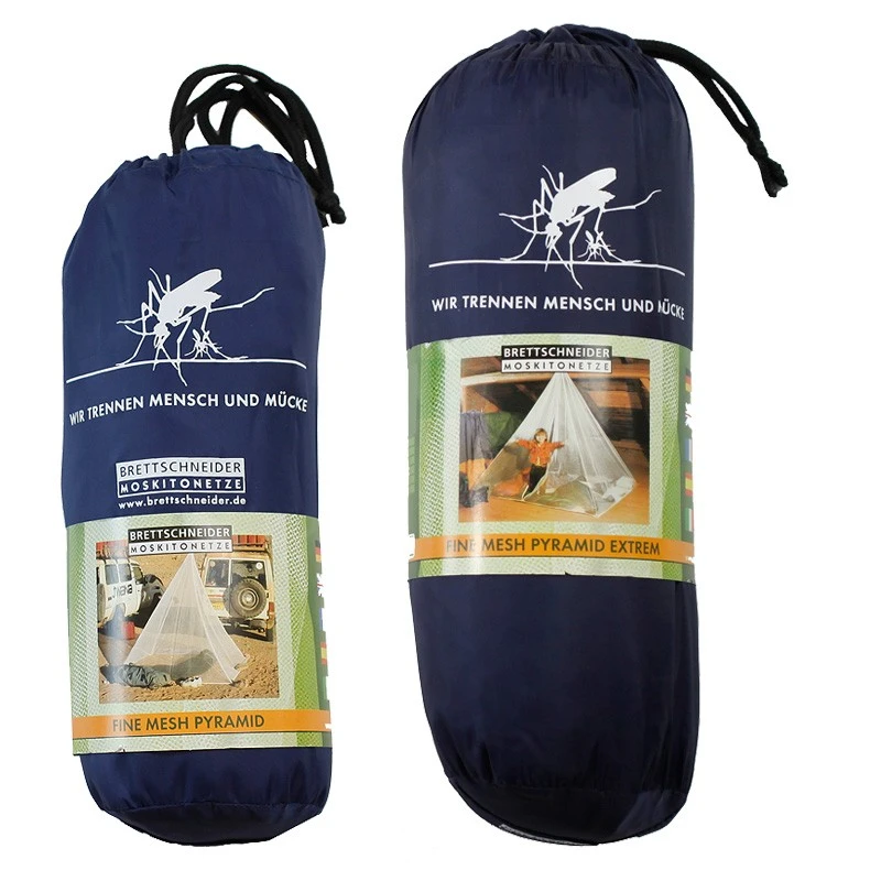 Die Brettschneider Fine Mesh Pyramid Moskitonetze Polar sind aus besonders leichtem Polyamid in Pyramidenform. Sie sind sehr klein verpackbar und liegen rundum geschlossen auf dem Bett auf. Die feinen Maschen halten Mücken, aber vor allem lokal vorkommende Kleinstinsekten ab.