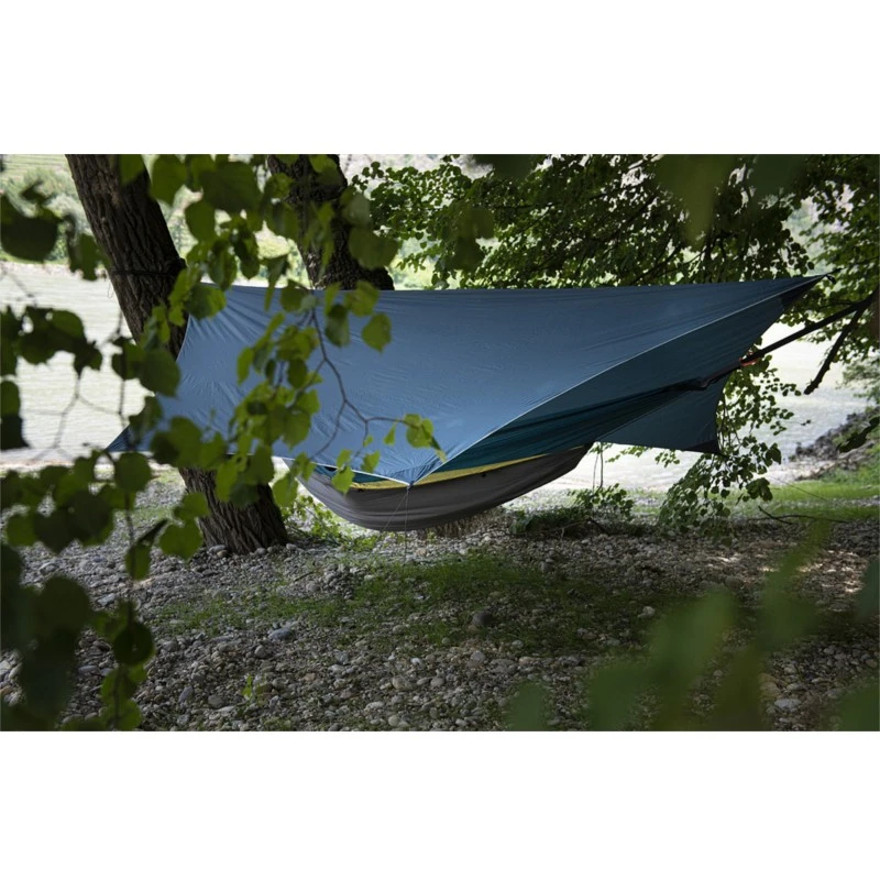 Das großzügig geschnittene Hammock Tarp Ultralight von Cocoon bietet optimalen Schutz vor Regen und Sonne.