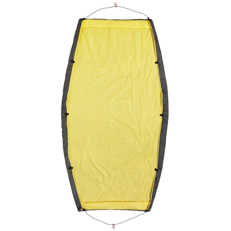 Das Underquilt ist der ideale Wärmeschutz von unten für kühle Nächte in der Hängematte. Die Form wurde speziell zur Verwendung in Hängematten entworfen. Mittels des feinen Aufhängesystems kann das Underquilt perfekt an die Hängematte angepasst werden, sodass keine Kältebrücken entstehen.