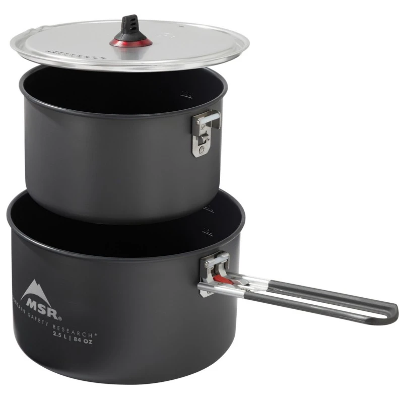 Das Kochtopf Set ist nicht nur leicht, sondern auch sehr platzsparend, robust und extrem effizient. Die Töpfe bestehen aus hartanodisiertem Aluminium und wurden mit einer Fusion® Keramikschicht versehen. Diese verleiht ihnen eine hohe Temperaturbeständigkeit und verlockt mit einer unglaublichen Antihaft-Performance. Des Weiteren lässt sich das Material sehr leicht reinigen. Der Deckel kann zudem als Sieb verwendet werden, was wiederum Platz im Rucksack spart.