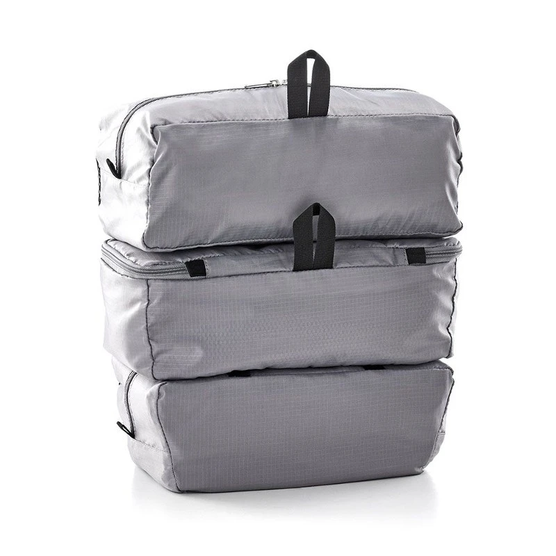 Campingausrüstung, saubere und schmutzige Kleidung, Werkzeug und viele weitere Dinge, die unterwegs benötigt werden, können in dem Organizer untergebracht werden. Durch das modulare System sind die drei Taschen, mit Netzinnen- sowie außenfächern auch einzeln und individuell verwendbar. Übereinander gestapelt passen sie perfekt in jeden Back-Roller.