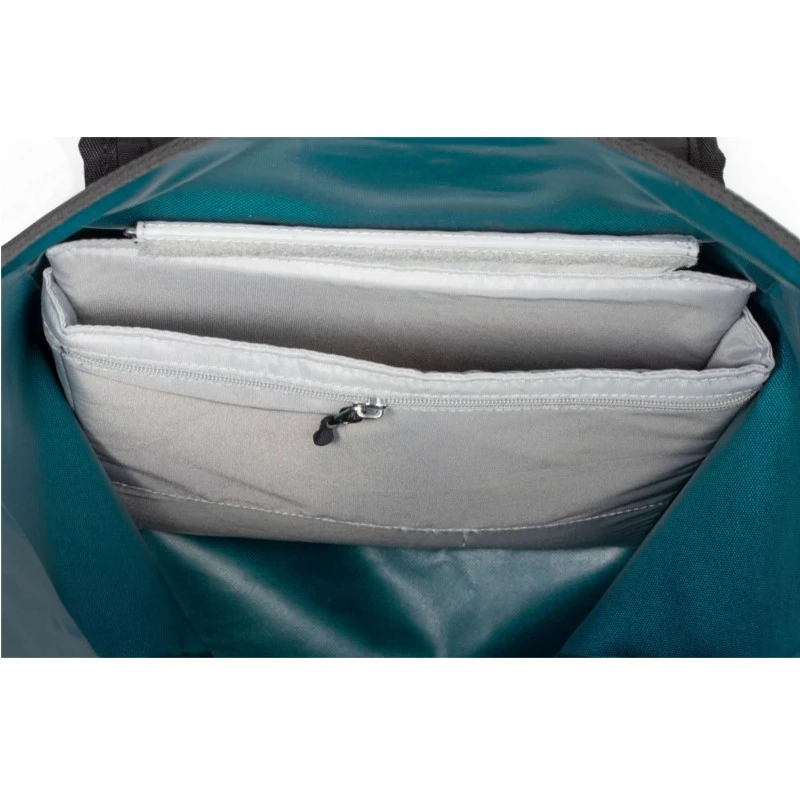 Die ausknöpfbare Innentasche bietet Platz nun auch Platz für den Laptop. Schaumpolsterrücken, anatomisch geformte Träger mit Brustgurt, Hüftgurt und Tragegriff erhöhen den Tragekomfort. Der Kantenschutz an den unteren Ecken schützt vor Abnutzung. An der Klettpatte kann zusätzlich ein Rücklicht oder der Fahrradhelm befestigt werden.