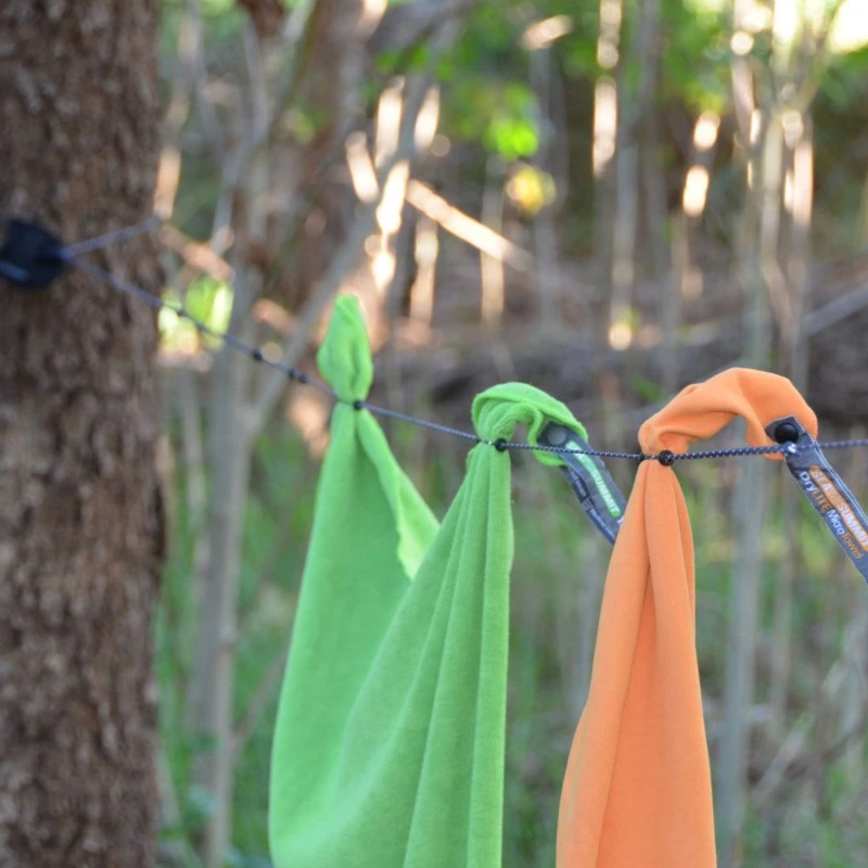 Die ideale Wäscheleine für Reisen, welche dank ihres speziellen Kordelsystems selbst bei stärkerem Wind Wäsche halten kann – die Clothesline von Sea To Summit.