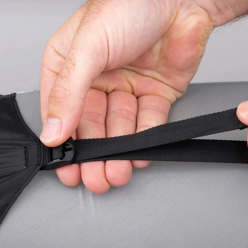 - 4 Gurte mit zwei Ladderlock- und zwei leicht zugänglichen Side-Release-Schnallen für gleichmäßige Kompression ohne Ausbeulen