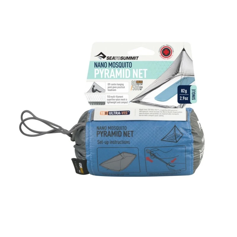 Das pyramidenförmige Sea To Summit Nano Mosquito Netz single für eine Person, deckt bei minimalem Gewicht und Packmaß maximalen Raum ab und schützt erstklassig vor Insekten.